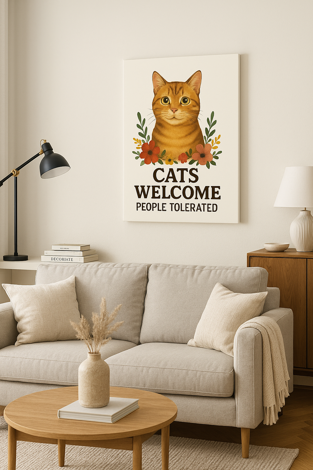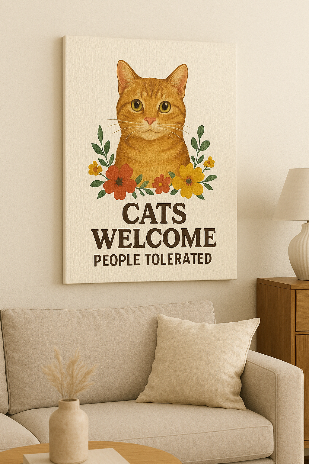 Cat-Themed Canvas Art, Feline Decor, Gifts for Cat Lovers, Home Wall Art, Pet Owner Wall Decor, Humorous Cat Print